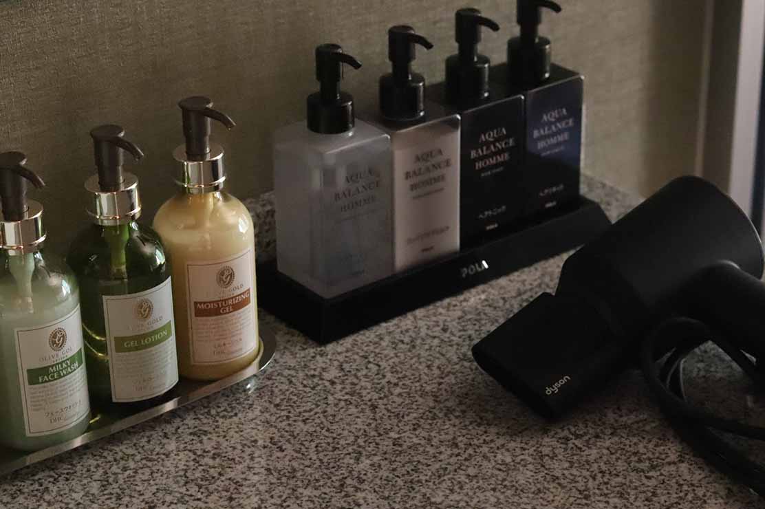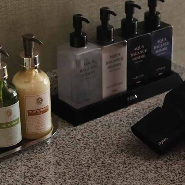 シャンプー・コンディショナー・ボディシャンプー・歯ブラシ・ヘアーブラシ・カミソリ・シャワーキャップ・バスタオル・フェイスタオル・女性用化粧水