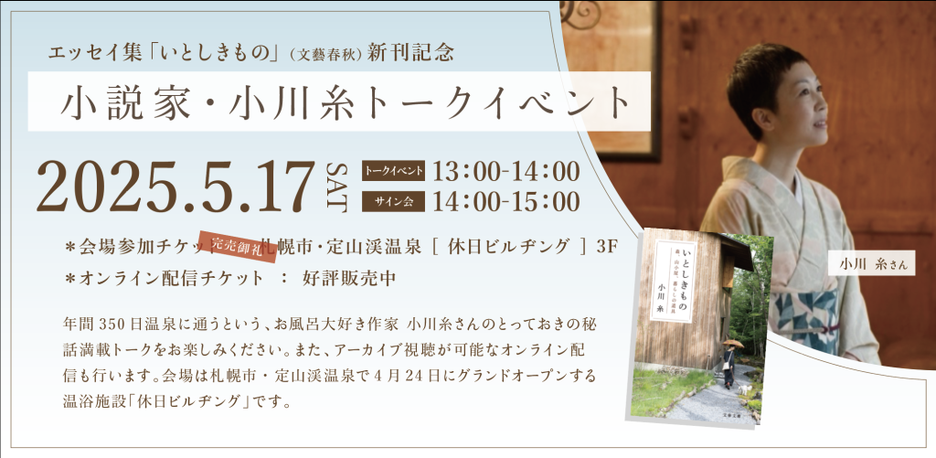 2025年5月17日(土)、定山渓温泉に小説家・#小川糸 さんをお招きしてトークイベントを開催することが決まりました。